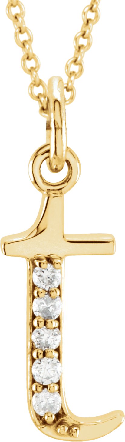 14K Yellow .025 CTW Natural Diamond Lowercase Initial T 16" Necklace