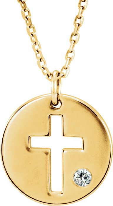 14K Yellow .03 CTW Diamond Pierced Cross Disc 16 18" Necklace Ref. 12679550
