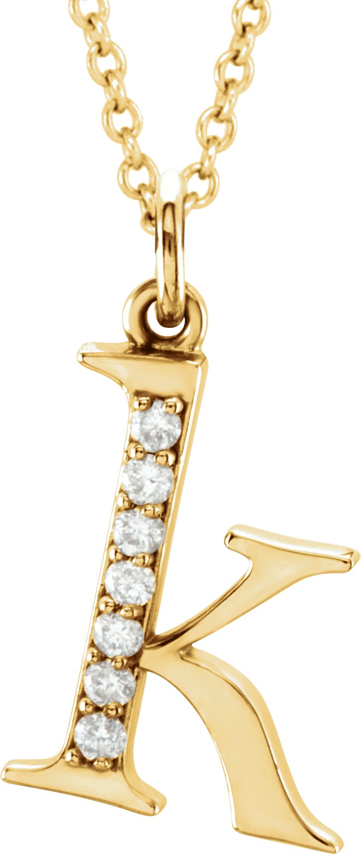 14K Yellow .03 CTW Natural Diamond Lowercase Initial K 16" Necklace