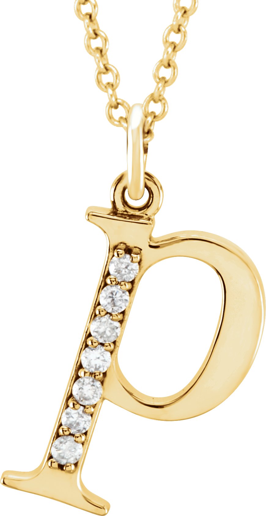 14K Yellow .03 CTW Natural Diamond Lowercase Initial P 16" Necklace