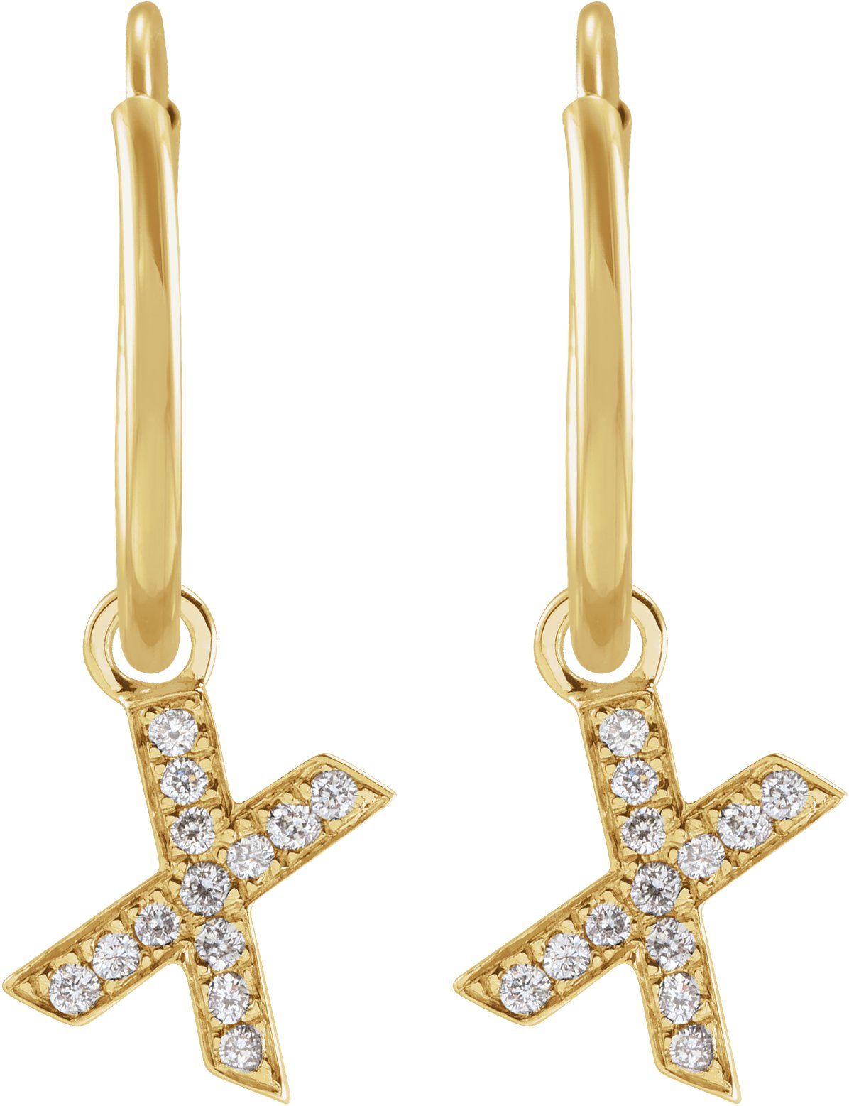 14K Yellow .04 CTW Natural Diamond Single Initial X Hoop Earring Ref 18988710
