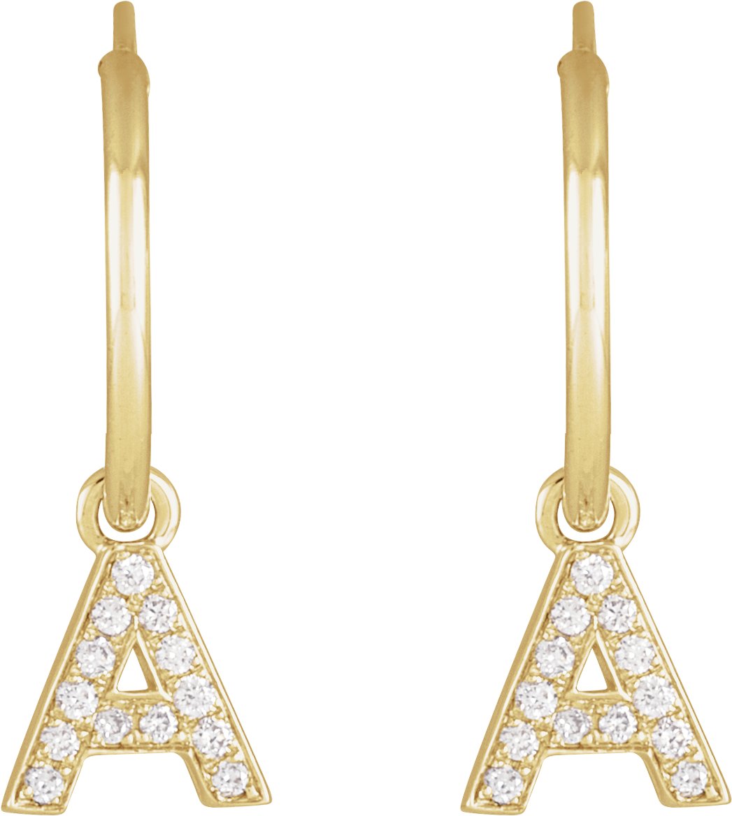 14K Yellow .05 CTW Natural Diamond Single Initial A Hoop Earring Ref 18988680