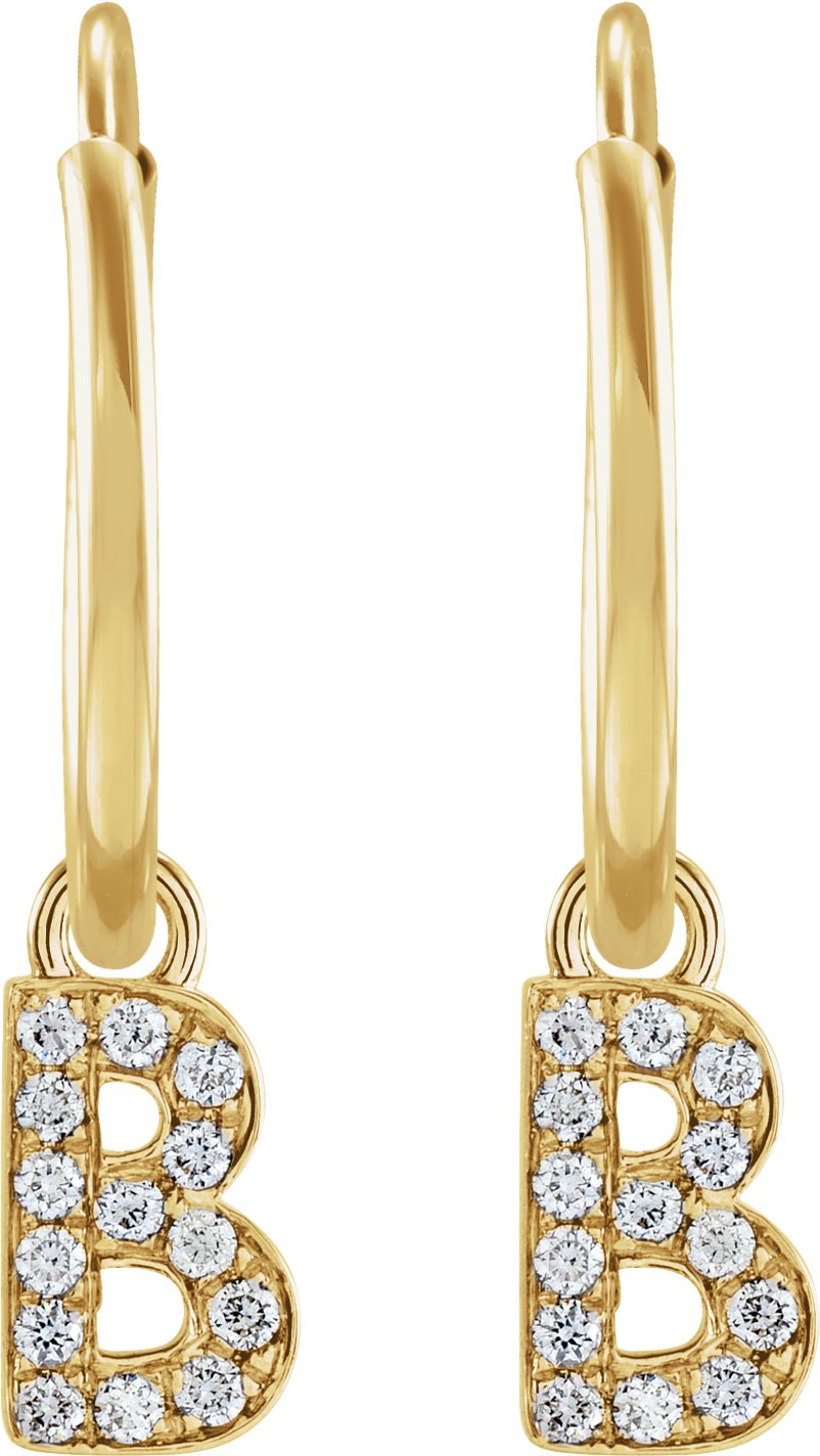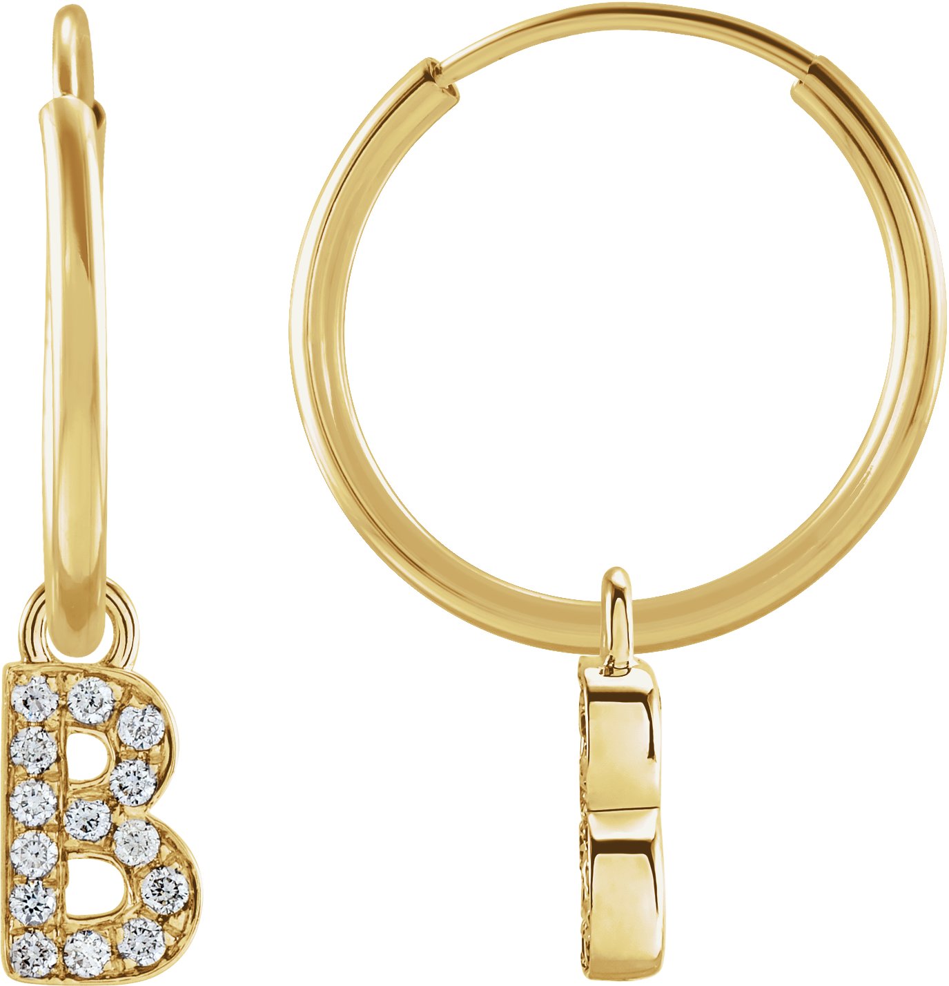 14K Yellow .05 CTW Natural Diamond Single Initial B Hoop Earring Ref 18988768