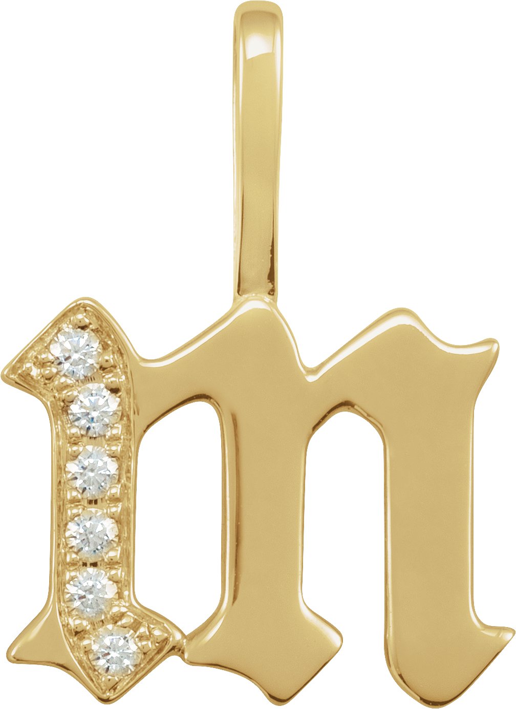 14K Yellow .06 CTW Natural Diamond Gothic Initial M Charm or Pendant Ref 18482024