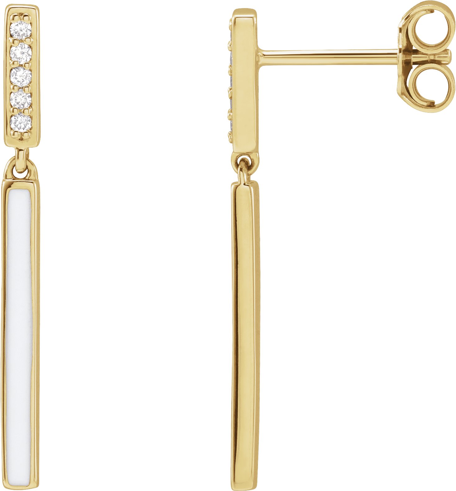 14K Yellow .06 CTW Natural Diamond and White Enamel Bar Earrings Ref 18628475