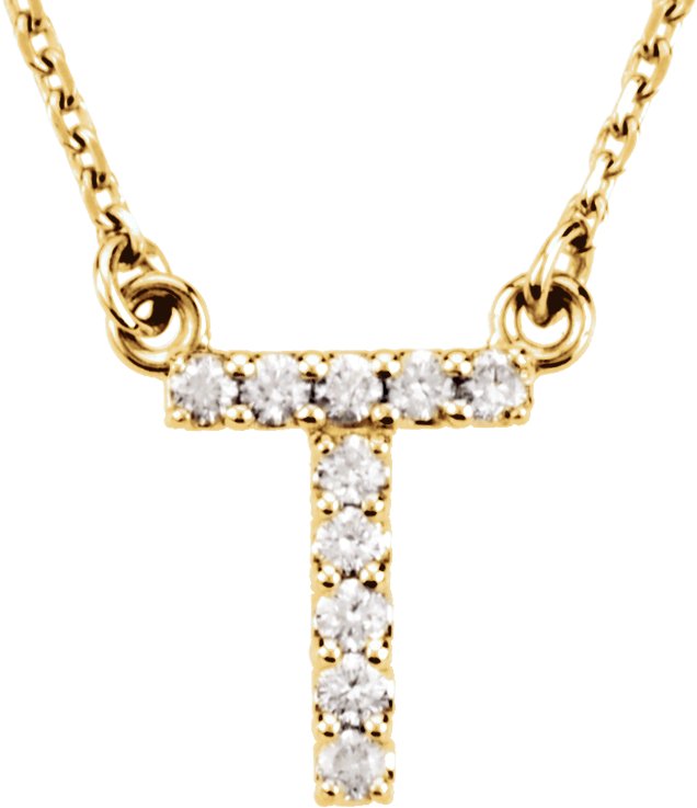 14K Yellow .08 CTW Natural Diamond Initial T 16 inch Necklace Ref 9869883