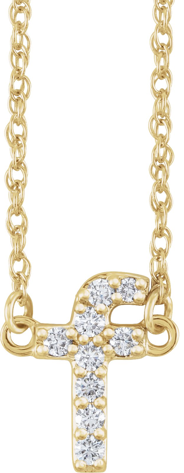 14K Yellow .08 CTW Natural Diamond Lowercase Initial F 16" Necklace