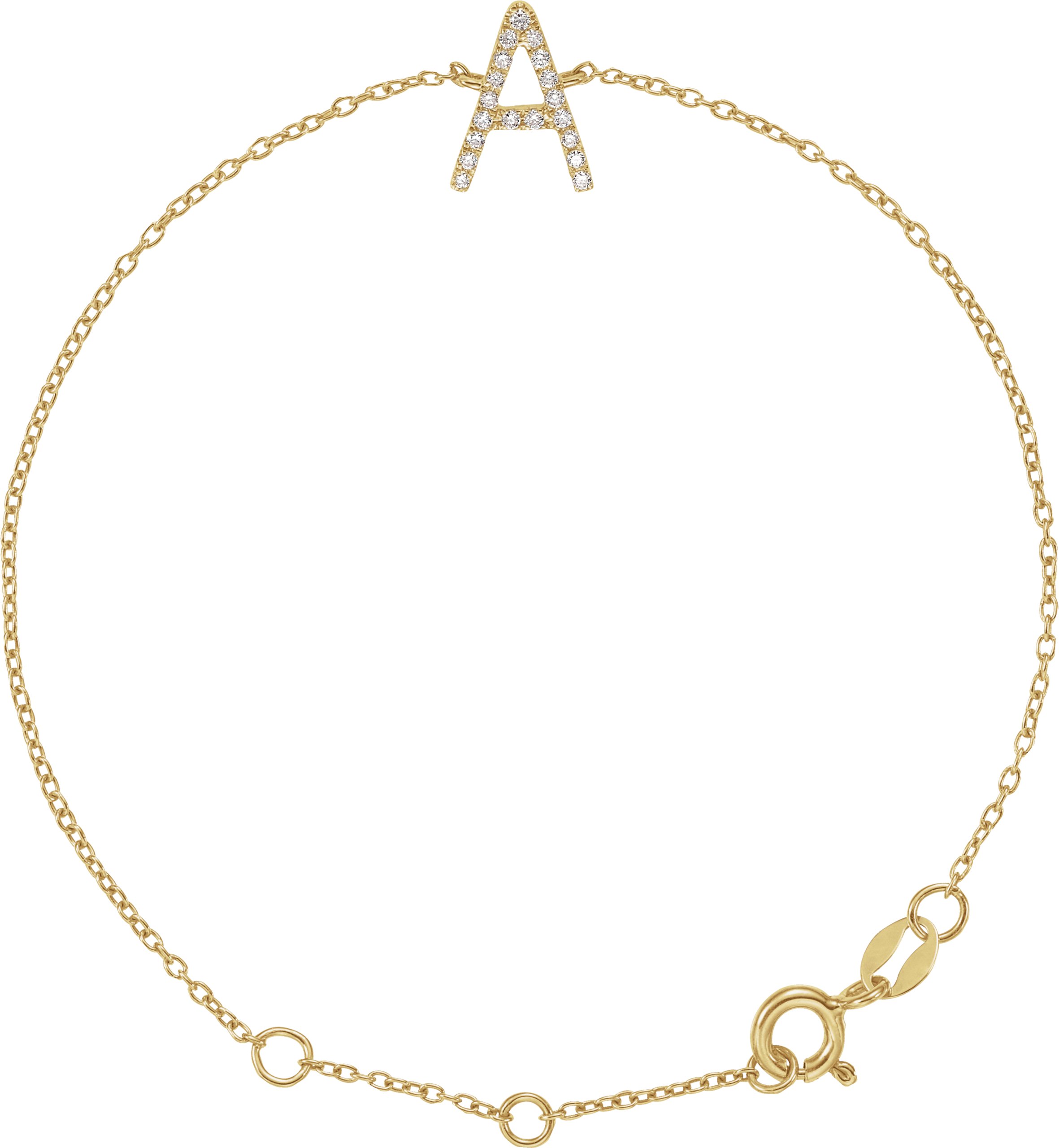 14K Yellow 1/10 CTW Diamond Initial A 6-7" Bracelet