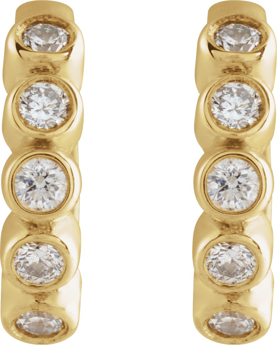 Description: 1/8 CTW Natural Diamond Bezel-Set Hinged Hoop Earrings