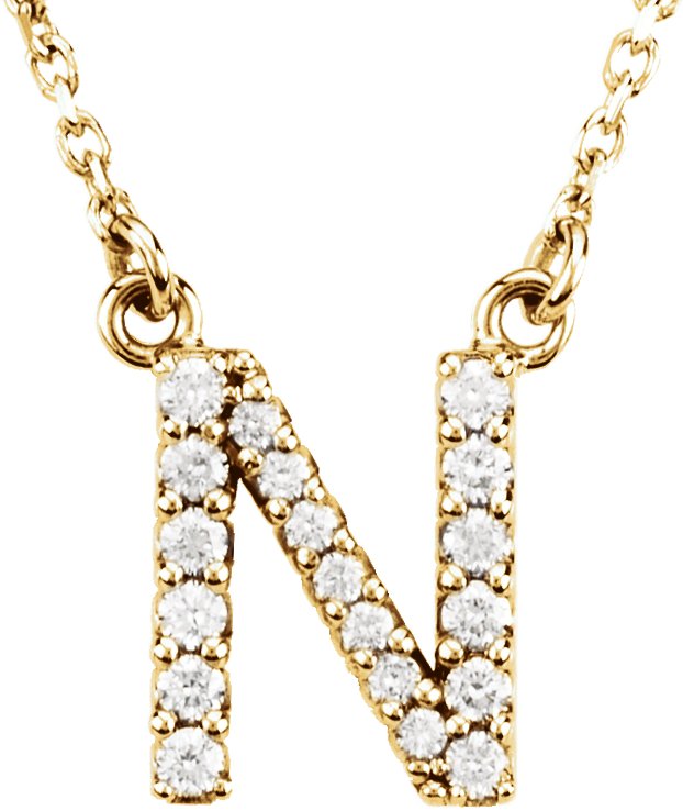 14K Yellow 1/8 CTW Natural Diamond Initial N 16" Necklace