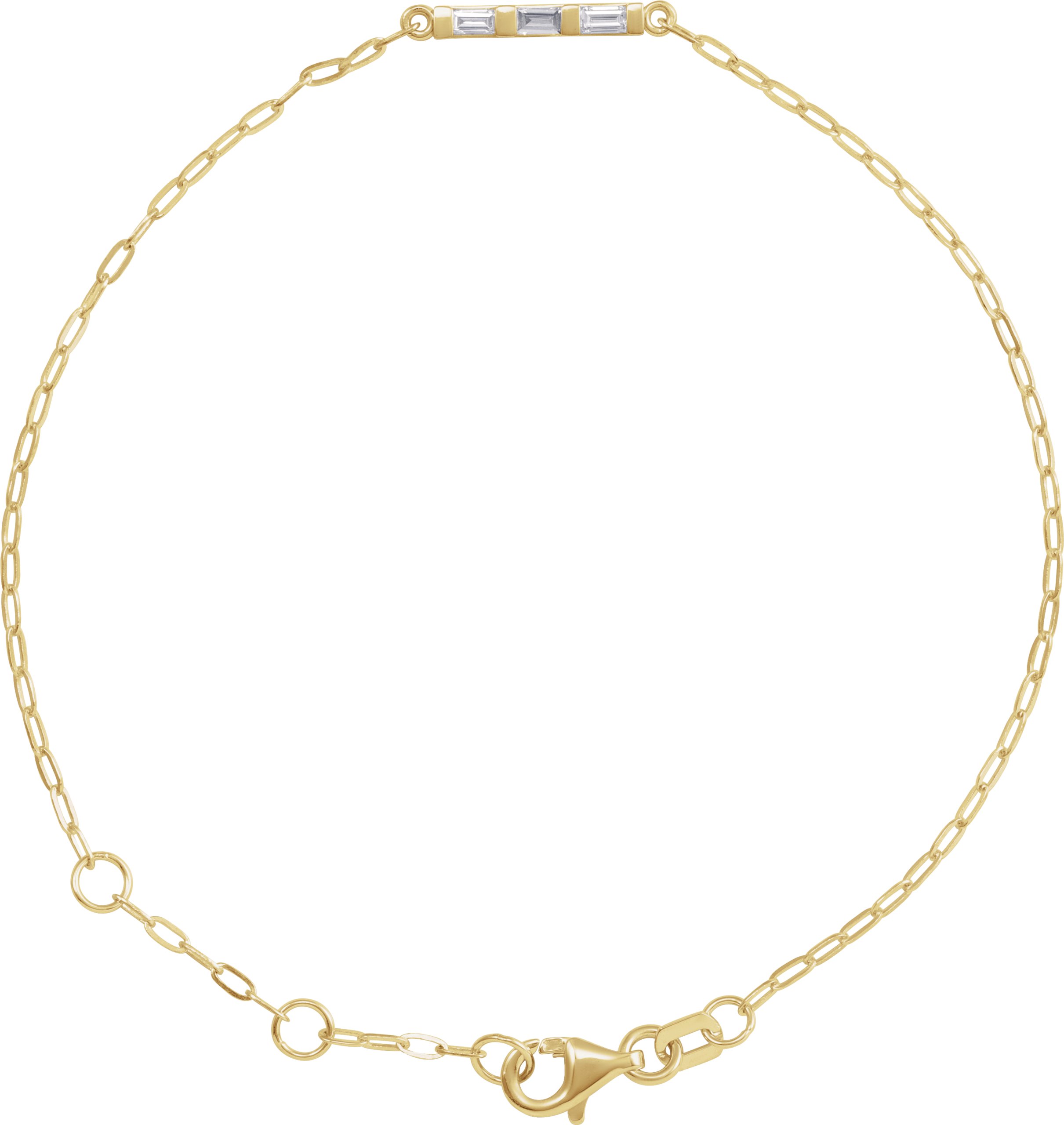 14K Yellow 1/6 CTW Natural Diamond Three-Stone Bar 6-7 1/2" Link Bracelet