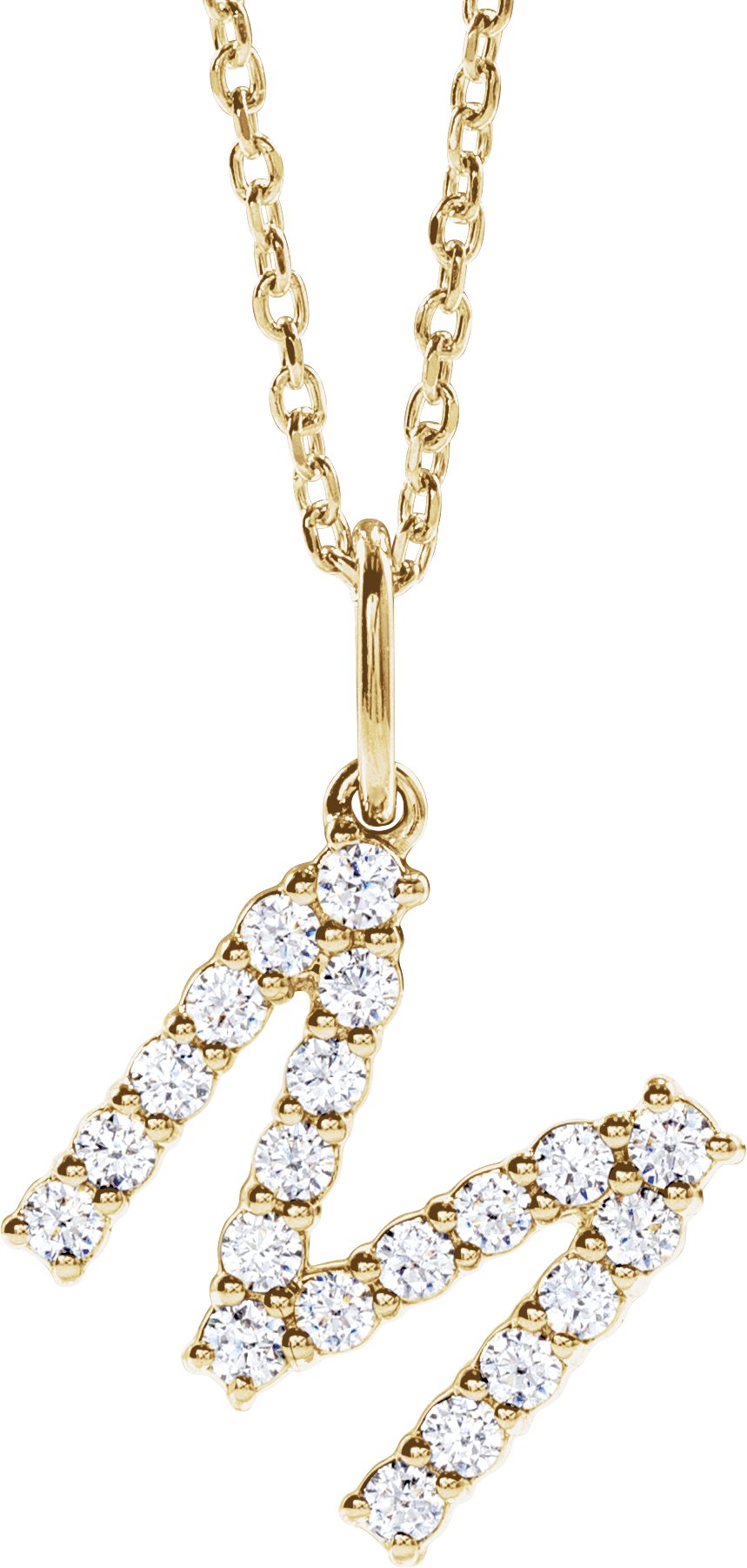 14K Yellow 1/3 CTW Lab-Grown Diamond Initial M 16-18" Necklace