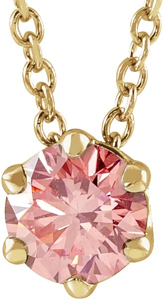 14K Yellow 3/8 CT Pink Lab Grown Diamond Solitaire 16 18 inch Necklace