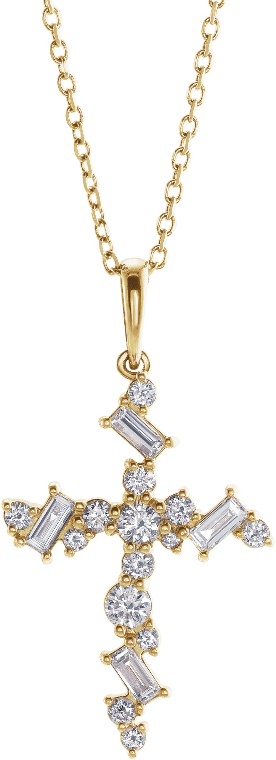 14K Yellow 3/8 CTW Diamond Scattered Cross 16 18" Necklace Ref. 16368452