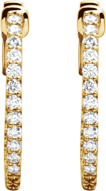 14K Yellow 1/2 CTW Lab-Grown Diamond Inside-Outside 19 mm Hinged Hoop Earrings