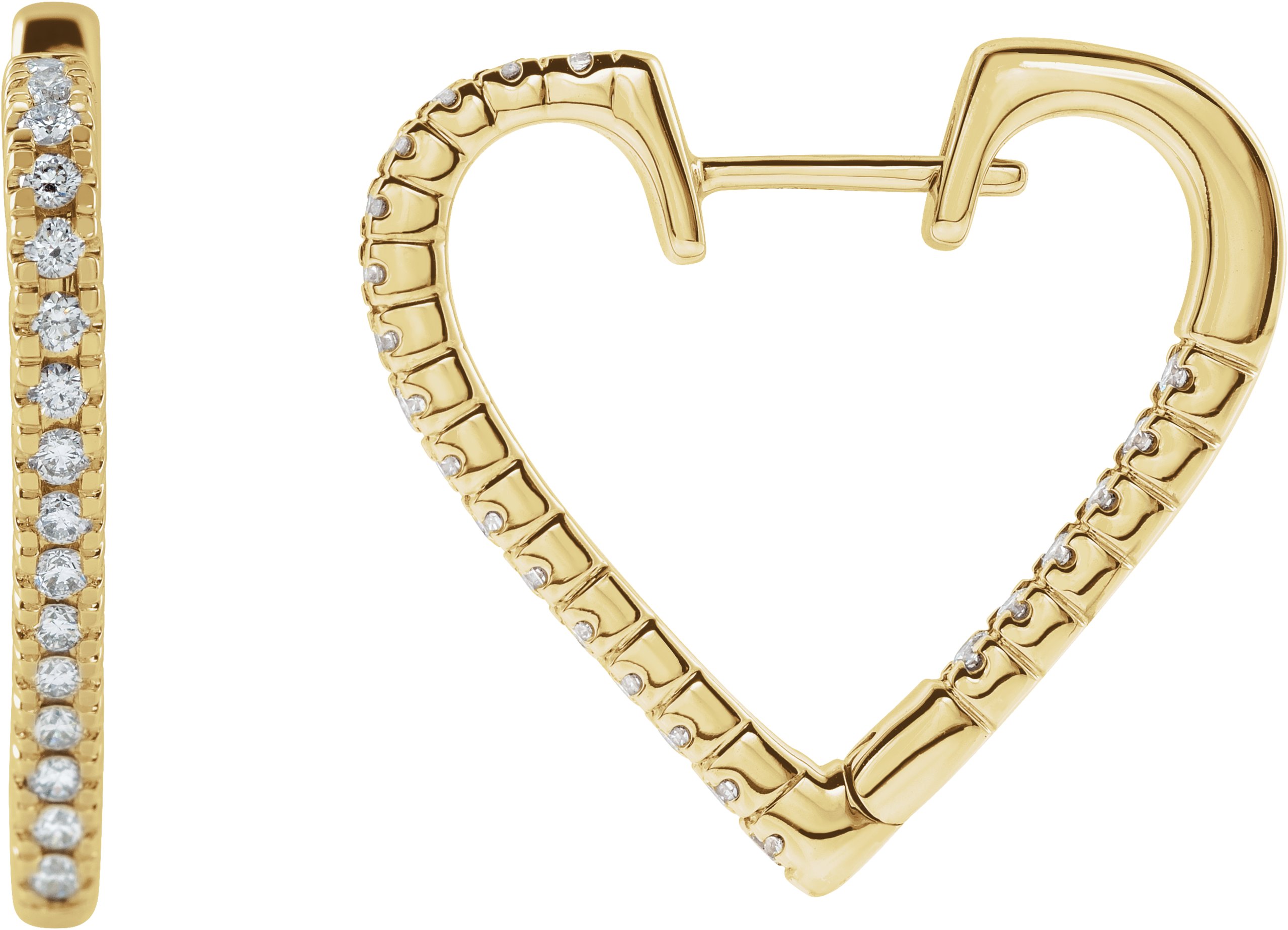 14K Yellow .625 CTW Diamond Heart Hoop Earrings