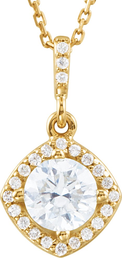14K Yellow .875 CTW Diamond Halo Style 18 inch Necklace