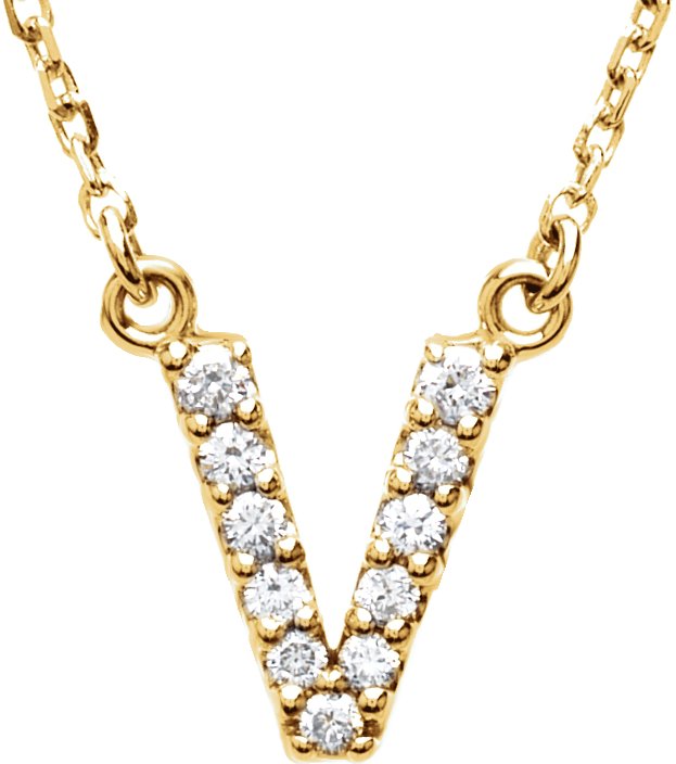 14K Yellow 0.13 CTW Natural Diamond Initial V 16 inch Necklace Ref 9869915