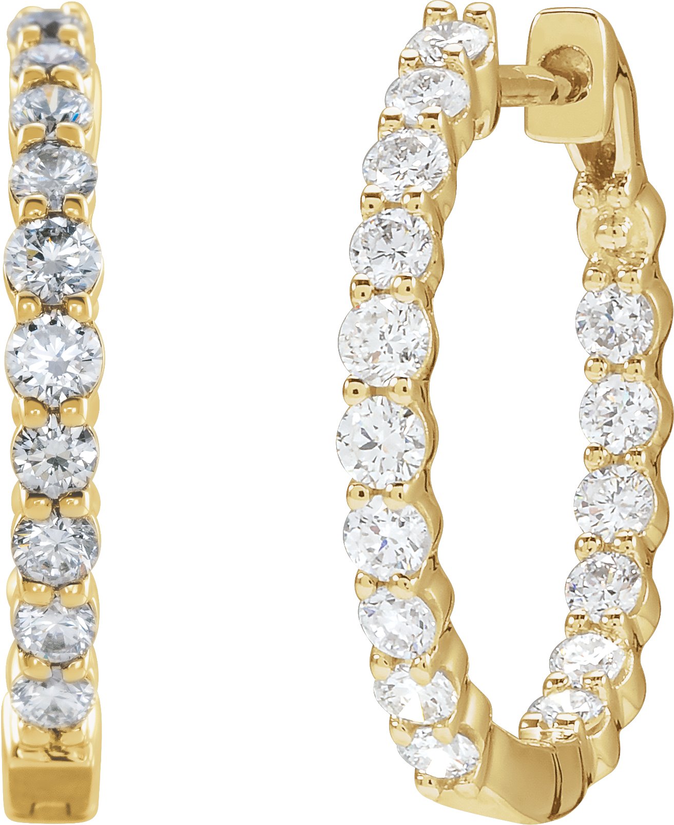 14K Yellow 1 CTW Lab Grown Diamond Inside Outside Hinged 19.3 mm Hoop Earrings Ref 18349739
