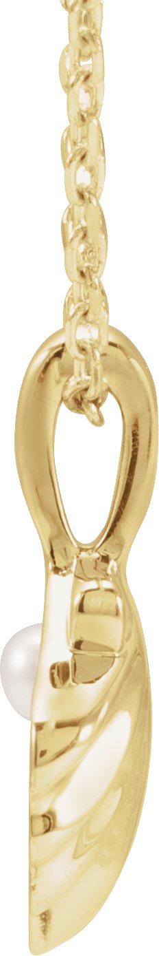 14K Yellow 1-Stone Cultured White Seed Pearl Family Shell 16-18" Necklace