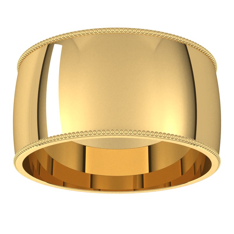 14K Yellow 10 mm Milgrain Half Round Comfort Fit Band Size 10