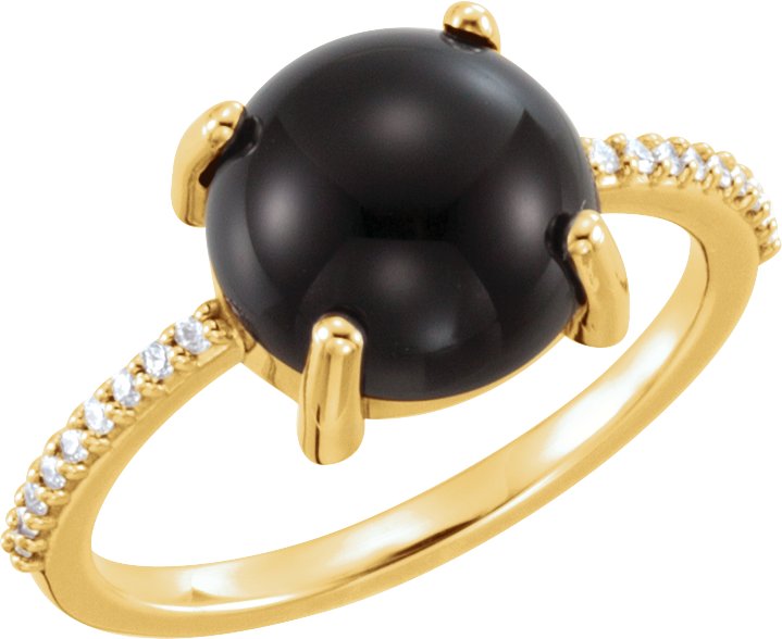 14K Yellow 10 mm Round Cabochon Onyx & .08 CTW Diamond Ring