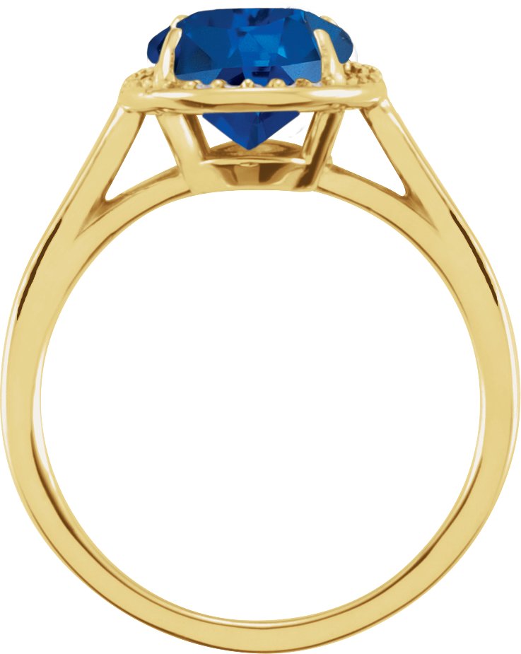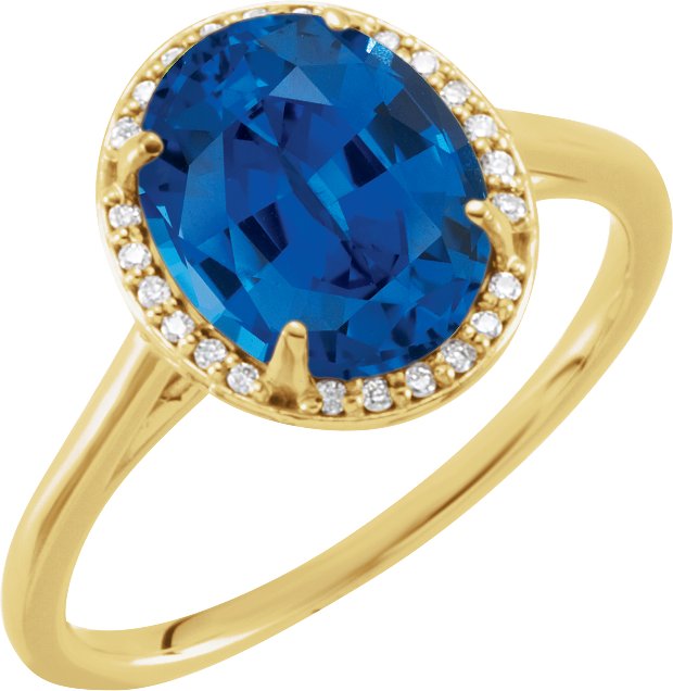 14K Yellow 10x8 mm Oval Chatham Lab Created Blue Sapphire & .06 CTW Diamond Ring