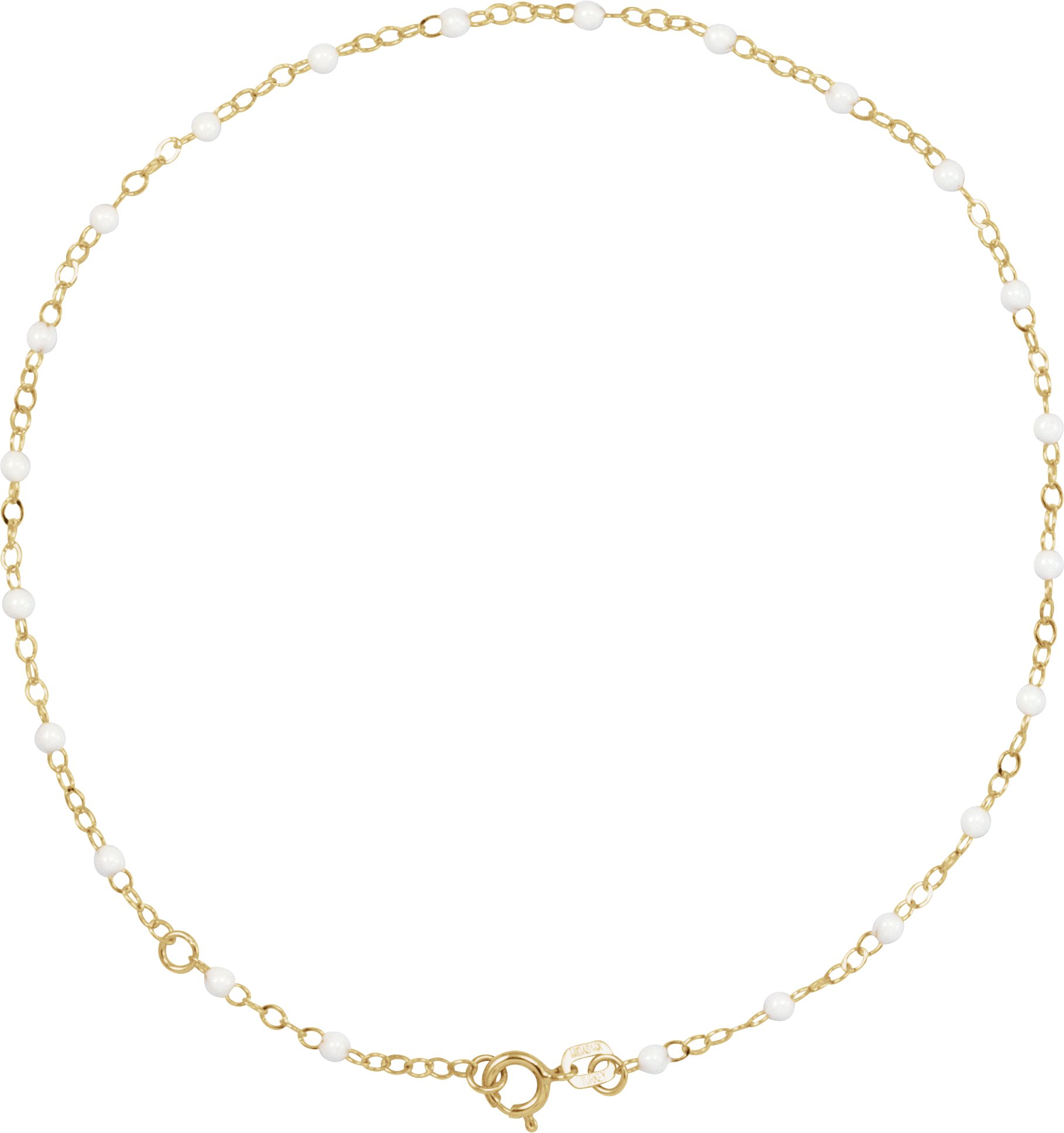 14K Yellow 2 mm Adjustable White Enamel Bead 9-10" Chain