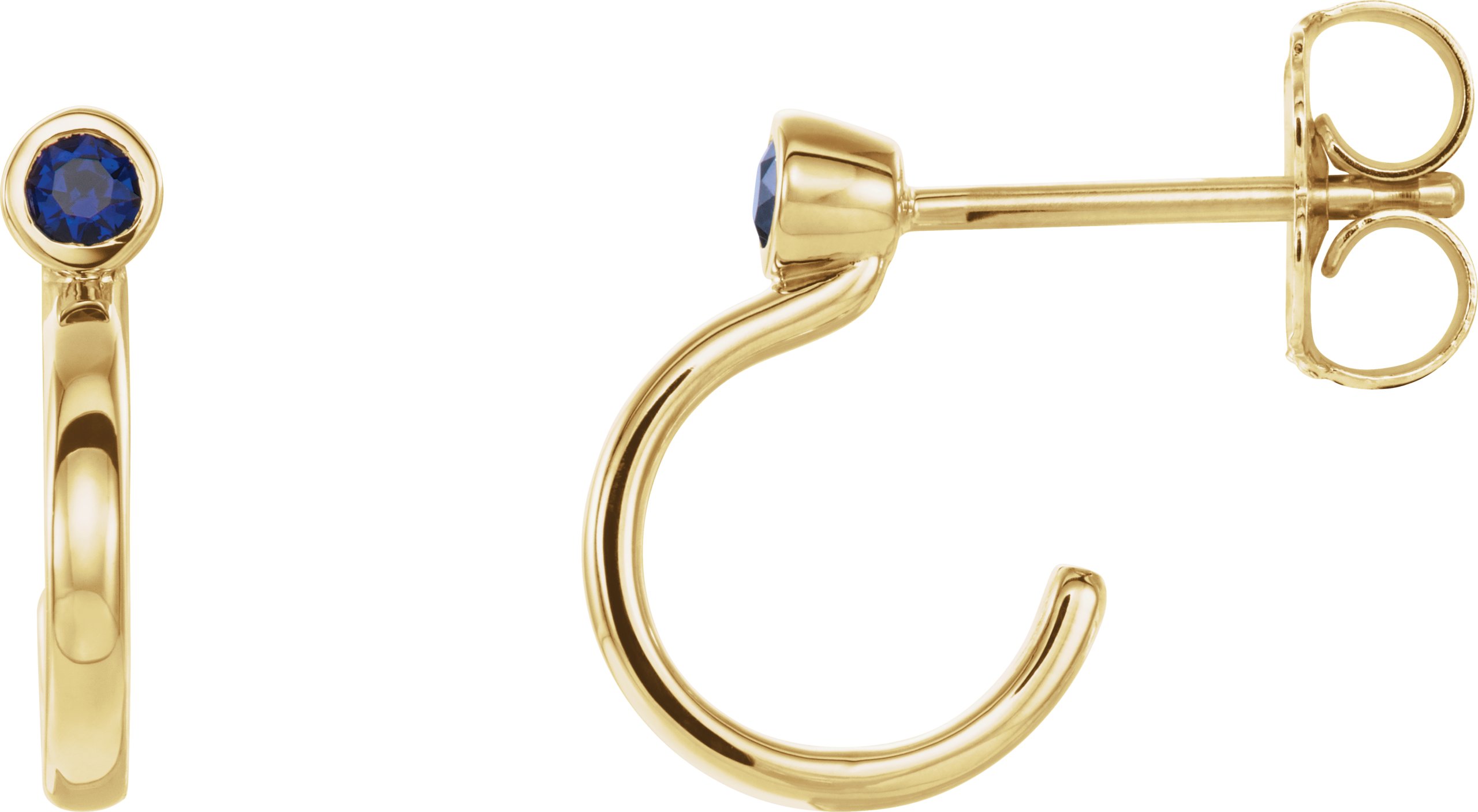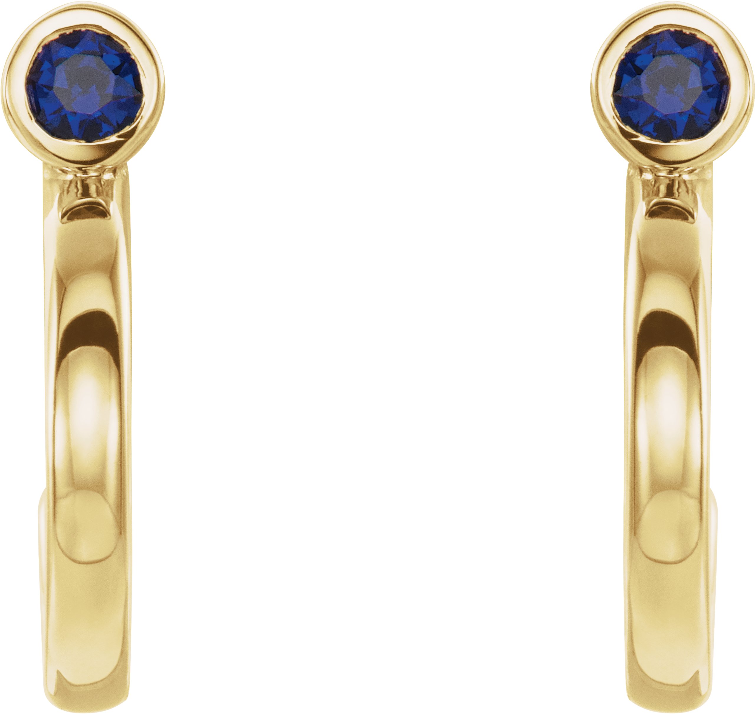 14K Yellow 2 mm Round Chatham Lab Created Blue Sapphire Bezel Set Hoop Earrings