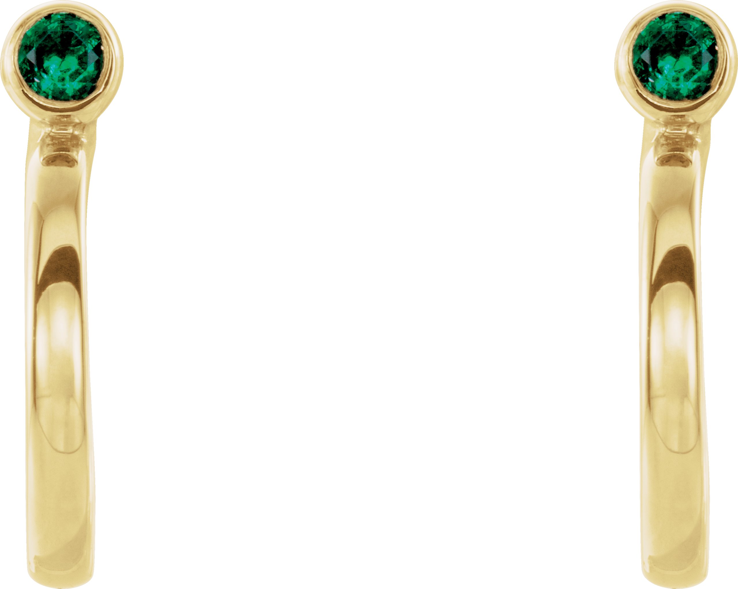14K Yellow 2 mm Round Chatham Lab Created Emerald Bezel Set Hoop Earrings