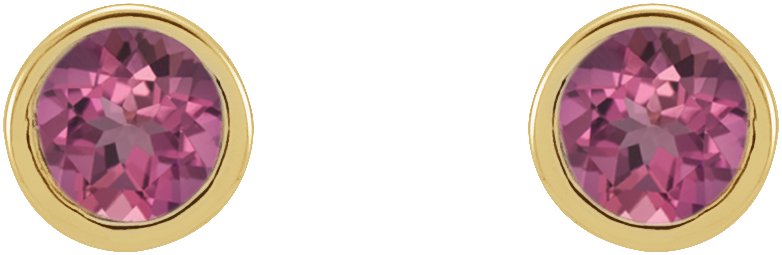 14K Yellow 2 mm Round Pink Tourmaline Micro Bezel-Set Earrings