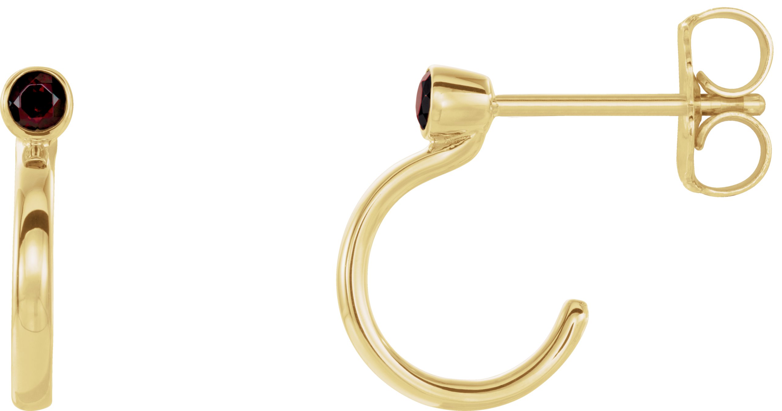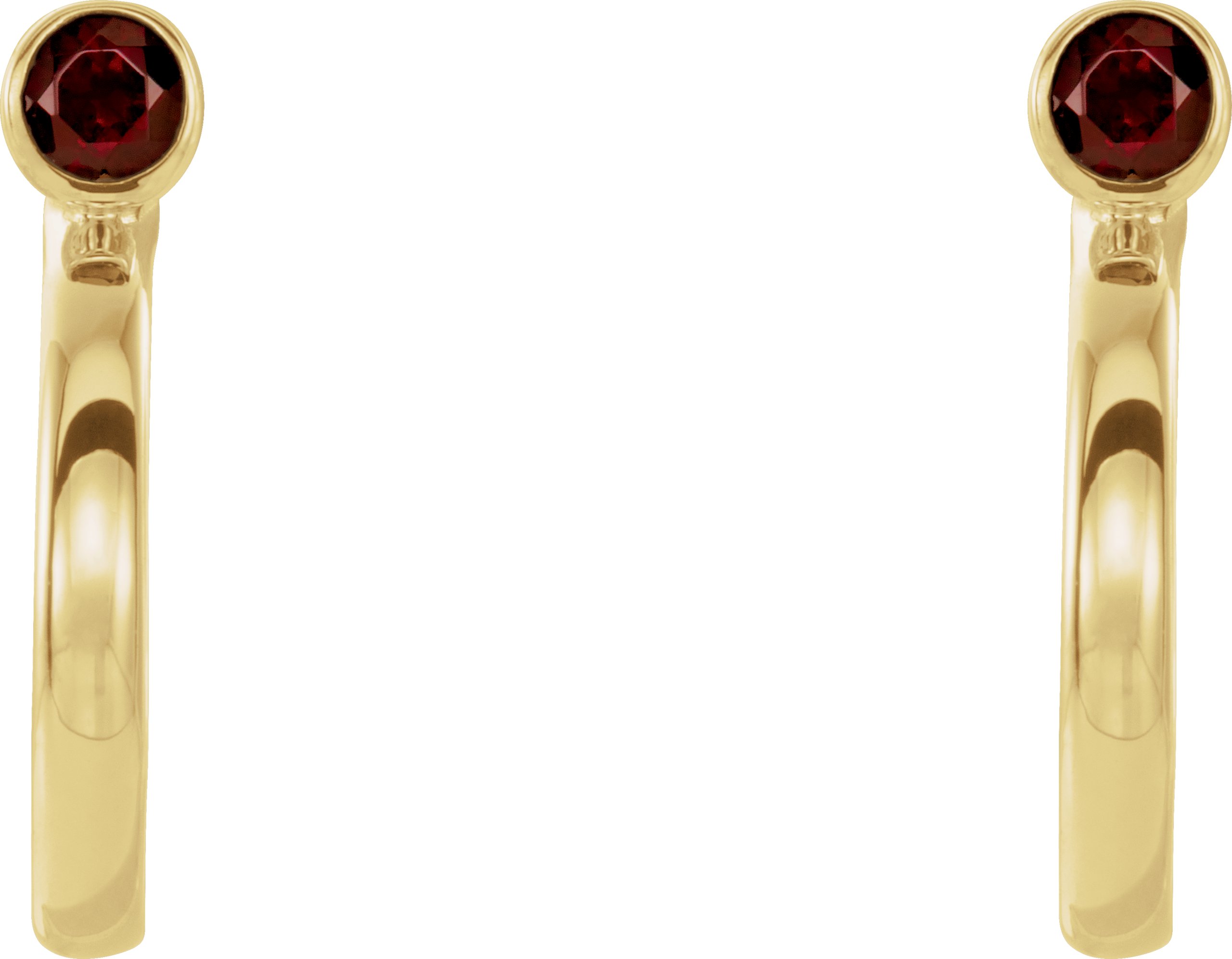 14K Yellow 2.5 mm Round Mozambique Garnet Bezel Set Hoop Earrings