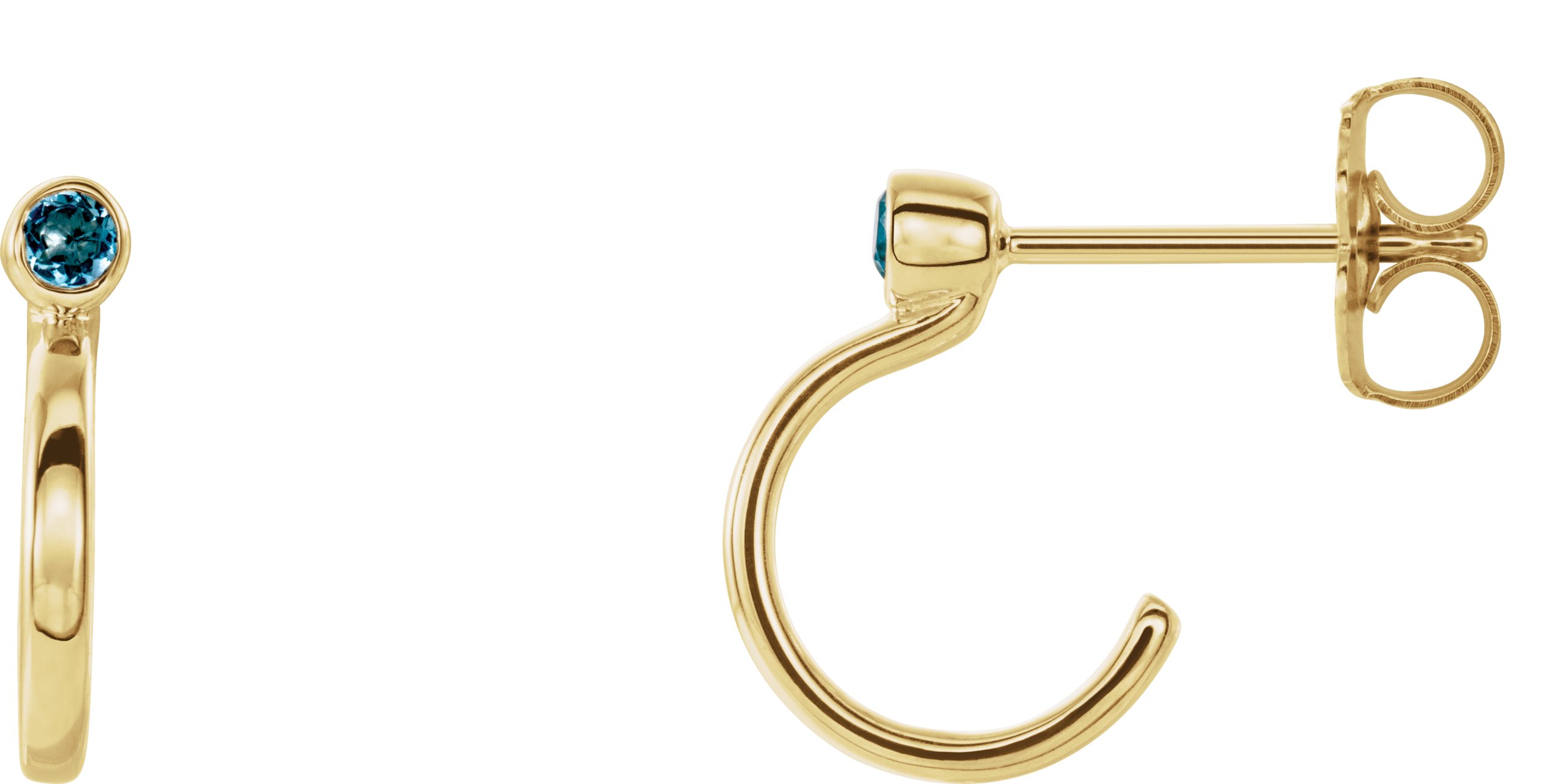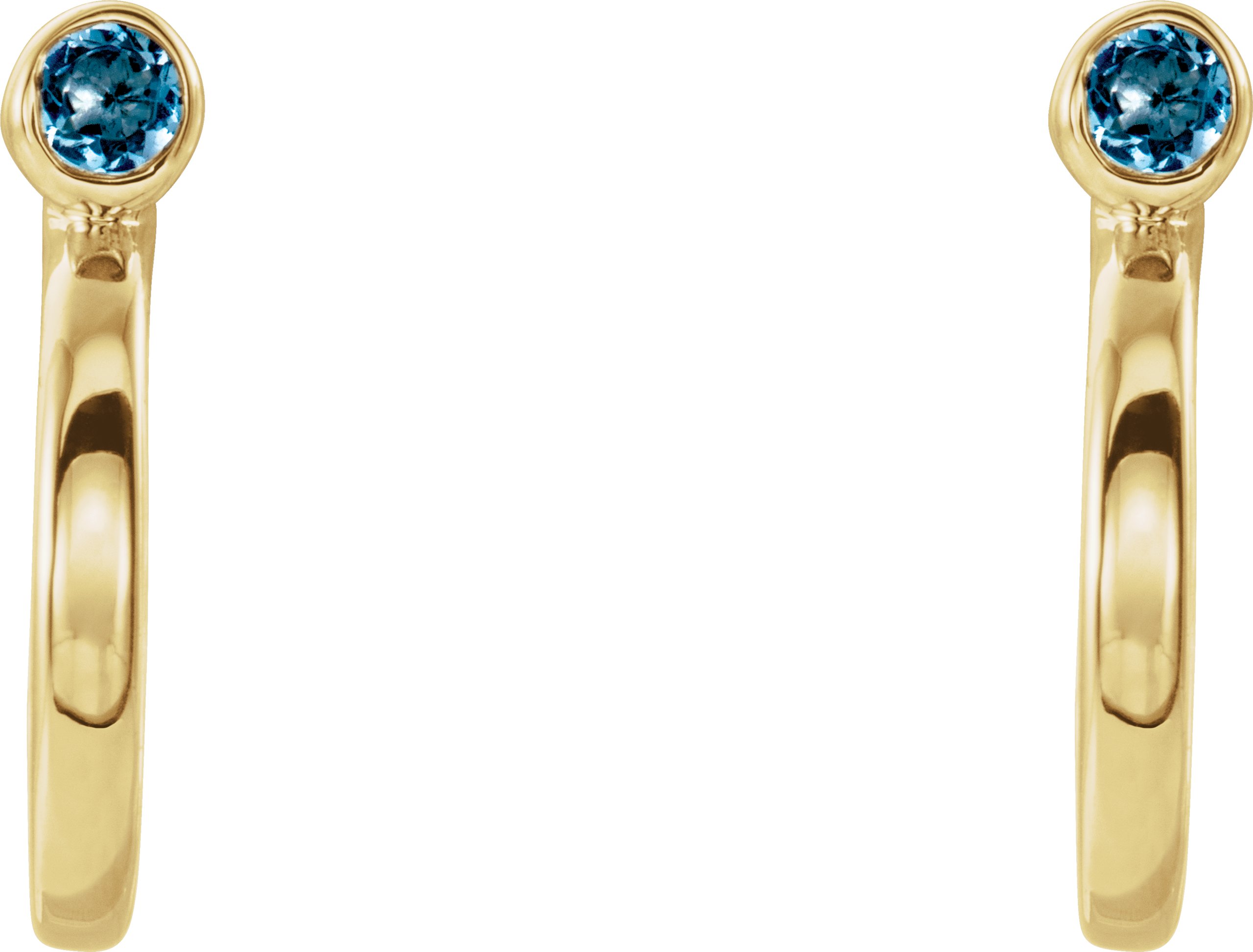 14K Yellow 3 mm Round Blue Zircon Bezel Set Hoop Earrings