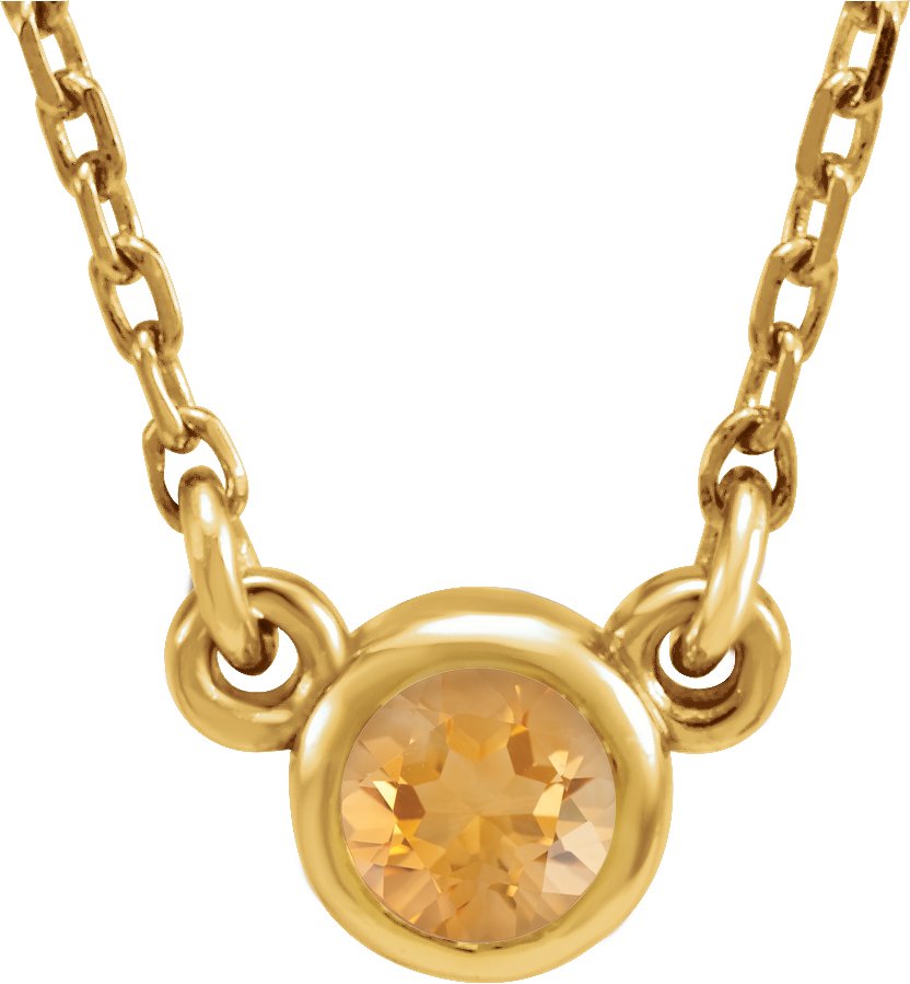 14K Yellow 3 mm Round Citrine Bezel Set Solitaire 16" Necklace Ref. 14244557