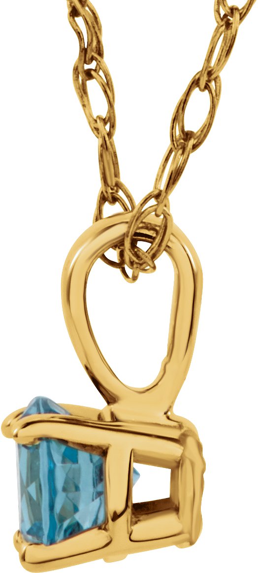 14K Yellow 3 mm Round December Imitation Blue Zircon Youth Birthstone 14 inch Necklace