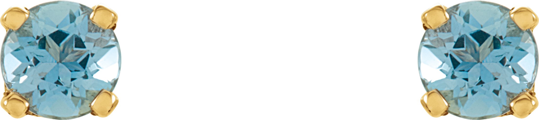 14K Yellow 3 mm Round Imitation Blue Zircon Youth Birthstone Earrings