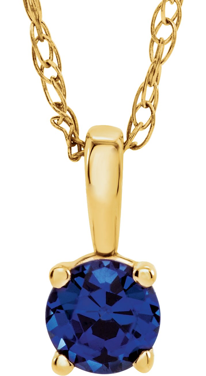 14K Yellow 3 mm Round September Genuine Blue Sapphire Youth Birthstone 14 inch Necklace