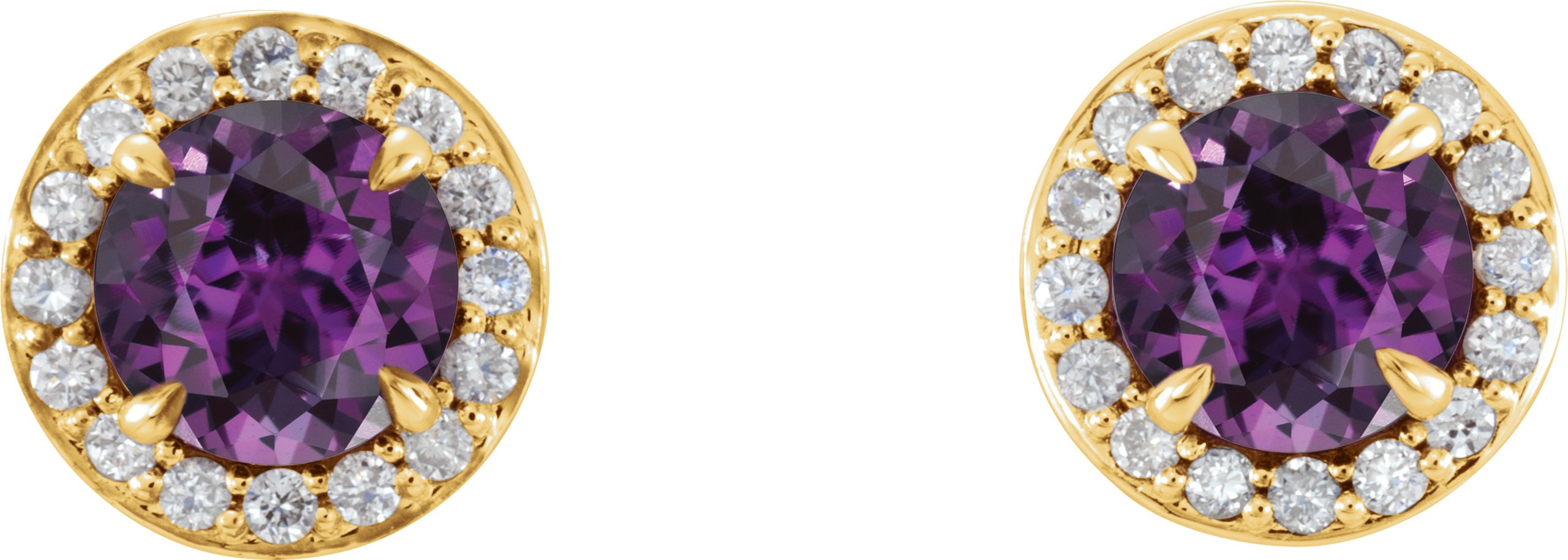 14K Yellow 3.5 mm Round Chatham Lab Created Alexandrite & 1/8 CTW Diamond Earrings
