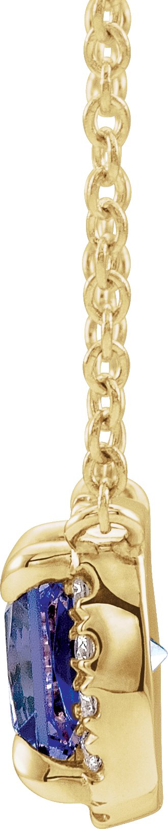 14K Yellow 3.5x3.5 mm Square Chatham Lab Created Blue Sapphire & .05 CTW Diamond 16 inch Necklace