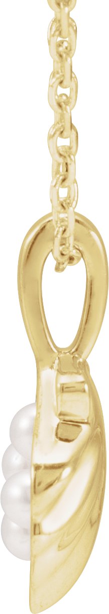 14K Yellow 4-Stone Cultured White Seed Pearl Family Shell 16-18" Necklace