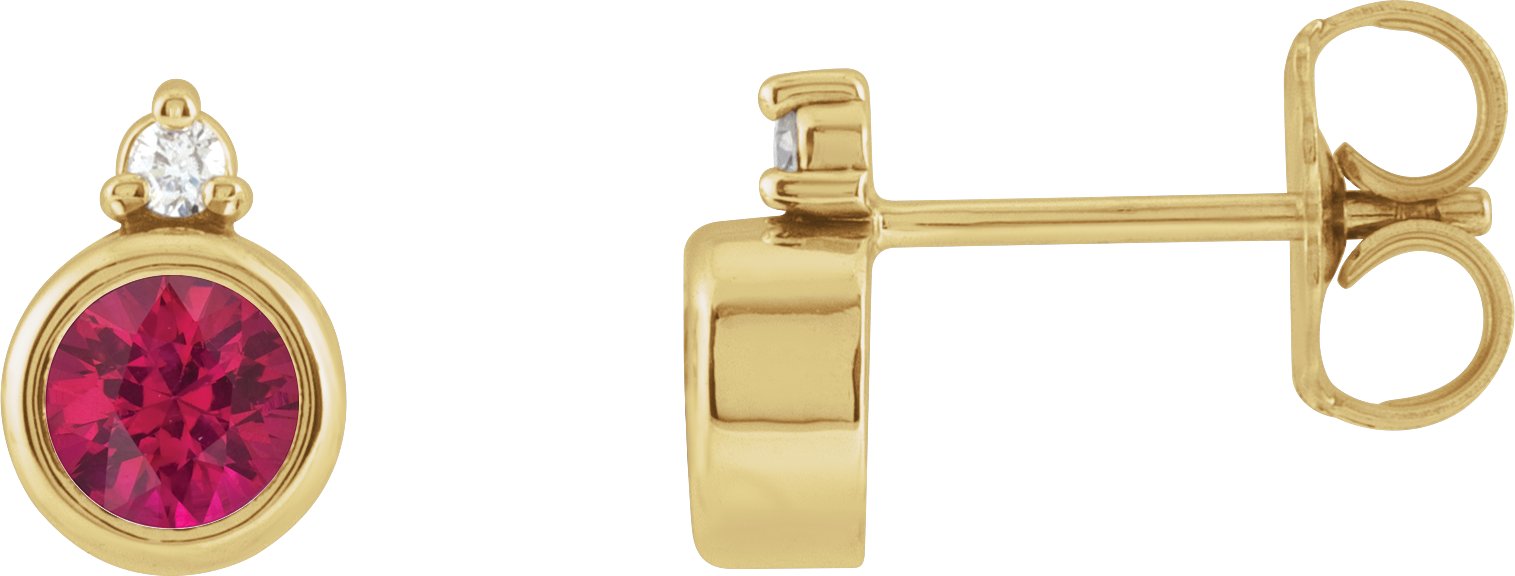 14K Yellow 4 mm Lab-Grown Ruby & .03 CTW Natural Diamond Earrings