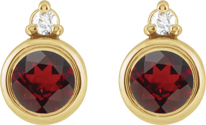 14K Yellow 4 mm Natural Mozambique Garnet & .03 CTW Natural Diamond Earrings
