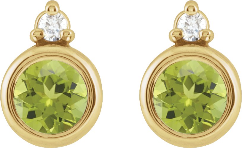 14K Yellow 4 mm Natural Peridot & .03 CTW Natural Diamond Earrings