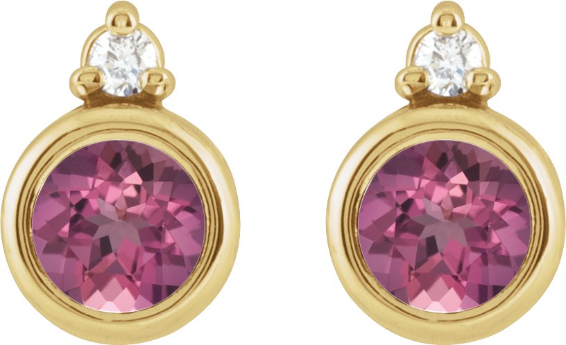 14K Yellow 4 mm Natural Pink Tourmaline & .03 CTW Natural Diamond Earrings