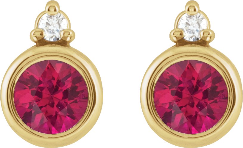 14K Yellow 4 mm Natural Ruby & .03 CTW Natural Diamond Earrings