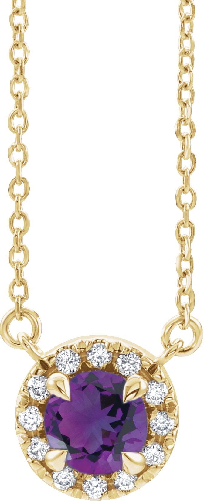 14K Yellow 4 mm Round Amethyst & .06 CTW Diamond 16 inch Necklace
