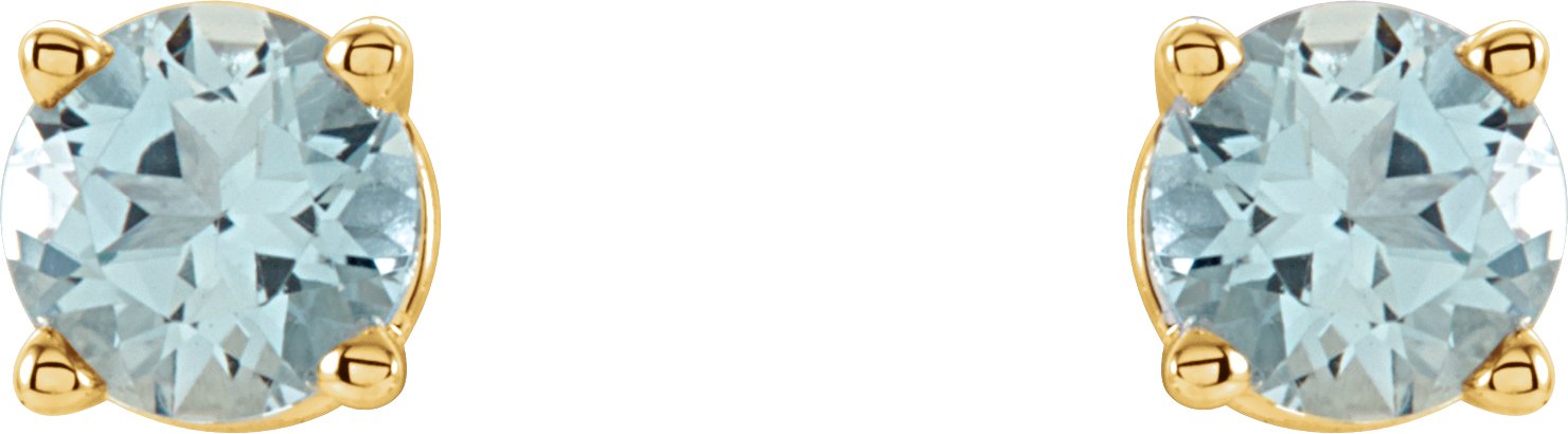 14K Yellow 4 mm Round Aquamarine Earrings