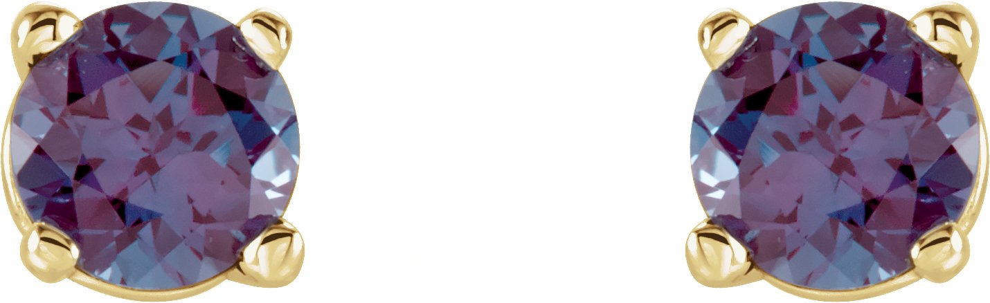 14K Yellow 4 mm Round Chatham Created Alexandrite Earrings