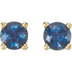 14K Yellow 4 mm Round Chatham Created Alexandrite Friction Post Stud Earrings