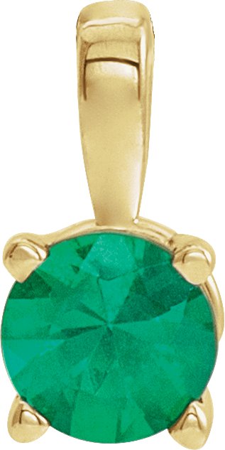 14K Yellow 4 mm Round Emerald Birthstone Pendant